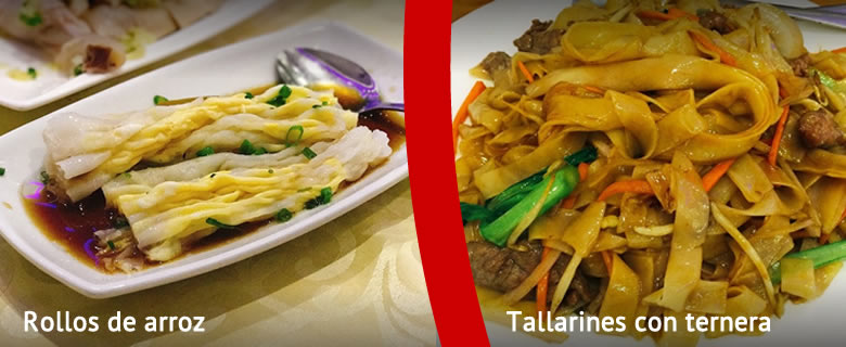 Más platos de arroz, fideos y tallarines: arroz frito de curry, arroz frito yang zhou, arroz frito con pollo y cebolla, arroz frito con ternera y guisantes, arroz frito con verdura, arroz frito con pulpo, tallarines de arroz frito con ternera, fideo frito con gambas, pasta de arroz frito con cerdo asado, tallarines fritos con tres delicias, empanadilla a la plancha y patada, wan tun frito, sopa de tallarines de pollo verdura, sopa tallarines de marisco verdura, sopa de tallarines de arroz con ternera y verdura, cha shao bao, pan frito y patada, bao zi frito, rollos de arroz de gambas con huevo, tallarines con salsa acida…